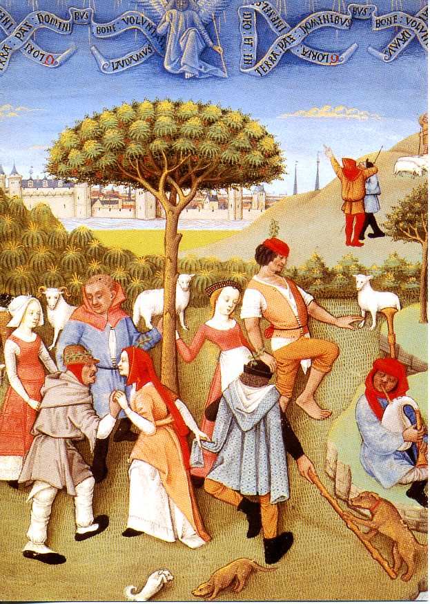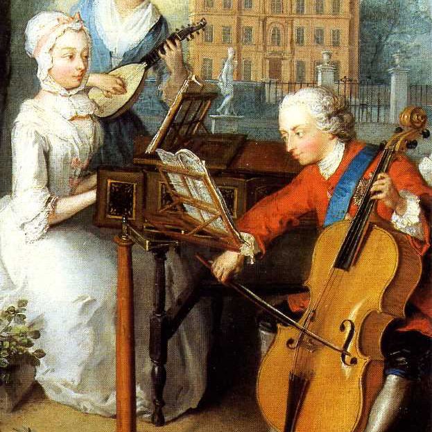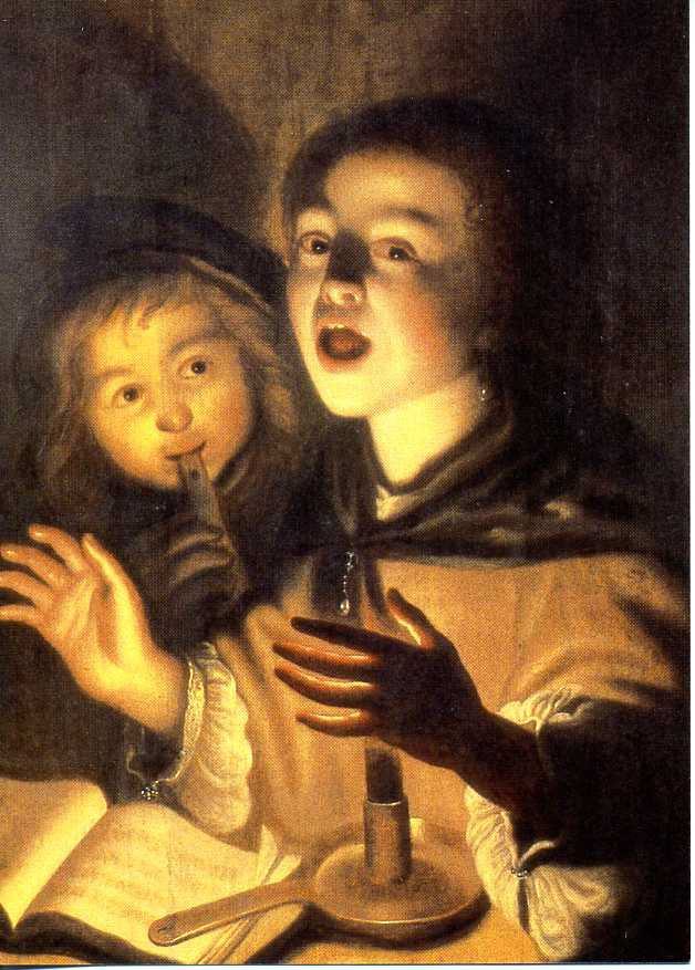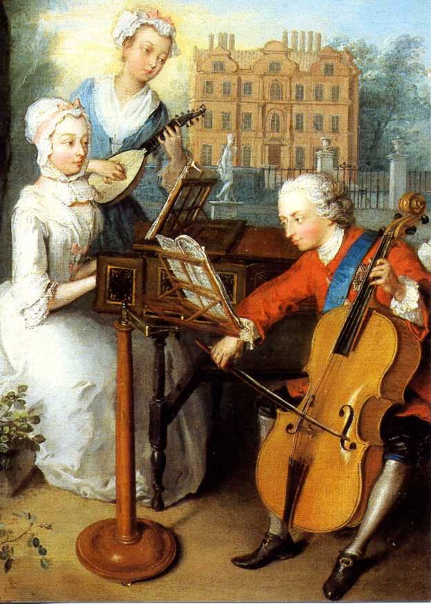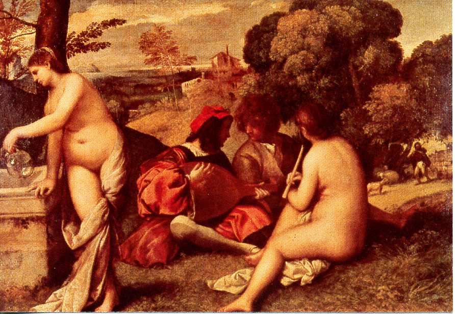 Arnold Böcklin (1827-1901): Pan und Nymphen; Philip Mercier (1689-1760): Prinz Frederick und seine Schwestern im Park von Kew; Tizian (1477-1576): Ländliches Konzert; Hendrick Coster (ca. 1615 - ca. 1665): Musizierende Kinder bei Kerzenlicht; Lorenzo Baldissera Tiepolo (1736-1776): Der Kavalier mit der Gitarre; Miniatur aus dem Stundenbuch von Charles d Angoulême (2. Hälfte des 15. Jh.): Ländlicher Weihnachtstanz um den Paradiesbaum.