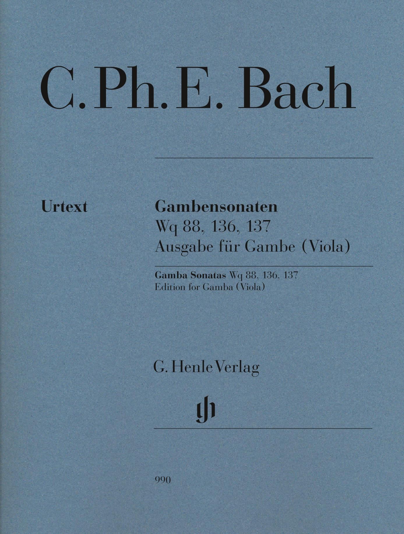 Wie sein Vater hat auch Carl Philipp Emanuel Bach drei Sonaten für Viola da Gamba komponiert. Sie stammen aus seiner Zeit am Berliner Hof Friedrichs des Großen und gaben dem herausragenden Gambisten der Hofkapelle Gelegenheit, sein virtuoses Können zu zeigen. Während die beiden Sonaten Wq 136 und 137 mit Generalbass komponiert sind, folgt Bach in der Sonate g-moll Wq 88 dem Vorbild des Vaters: Rechte und linke Hand des Cembalos wetteifern in gleichberechtigter Dreistimmigkeit mit dem Soloinstrument. Die Originallage der Gambenstimme erlaubt auch eine Ausführung mit Viola, eine Bearbeitungspraxis, die bereits durch zeitgenössische Quellen belegt ist. Diese Fassung liegt unserer Urtextausgabe als alternative Stimme bei.