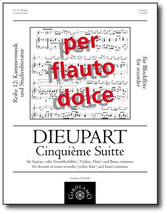 Die vorliegende fünfte Suite entstammt einem 1702 bei Estienne Roger in Amsterdam erschienenen Druck mit dem Titel Six / Suittes de Clavessin / / Composées & Mises en Concert / Par / Monsieur Dieupart / Pour un Violon & fl te avec une Basse / de Viole & un Archilut / Dédiées à / Madame la Comtesse de Sandwich /