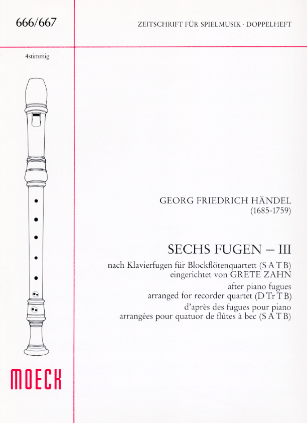 Händel, Georg Friedrich: Sechs Fugen für Blockflötenquartett (SATB), Heft III